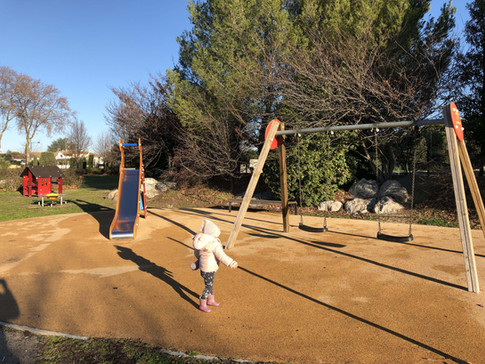 La première aire de jeux est à destination des plus petits, de 2 à 6 ans. Elle est composée de balançoires, d'éléments à bascules, d'une petite maison et d'une voiture.